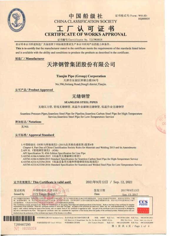 好多客戶買鋼管問生產企業是不是有船級認證,也就是國家對船舶用無縫鋼管的生產企業辦法的證書,買船舶用管找天津鋼管集團股份有限公司沒問題。天津大無縫鋼管廠報道www.www.wxun.net